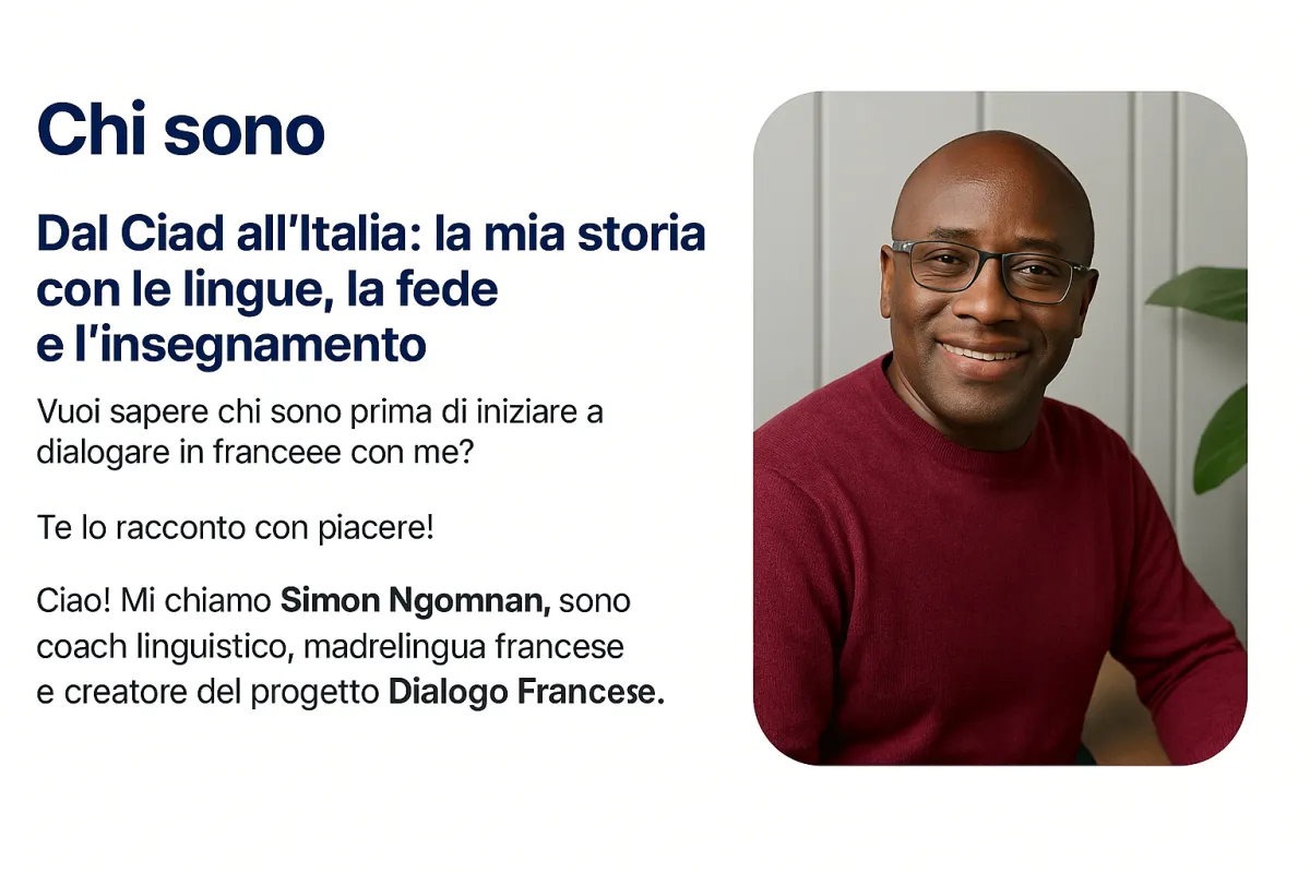 Mi chiamo Simon Ngomnan, sono coach linguistico, madrelingua francese