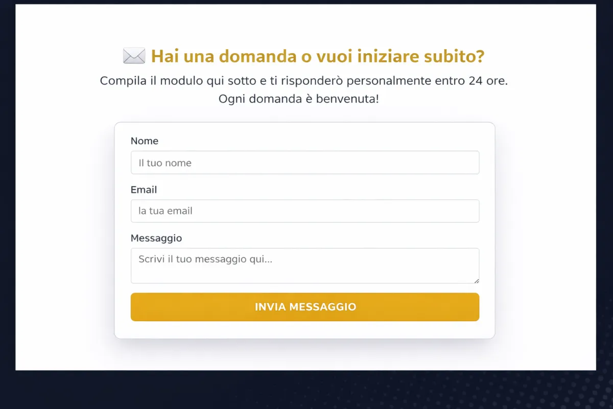 1. Compila il modulo qui sotto – Ti risponderò entro 24 ore.